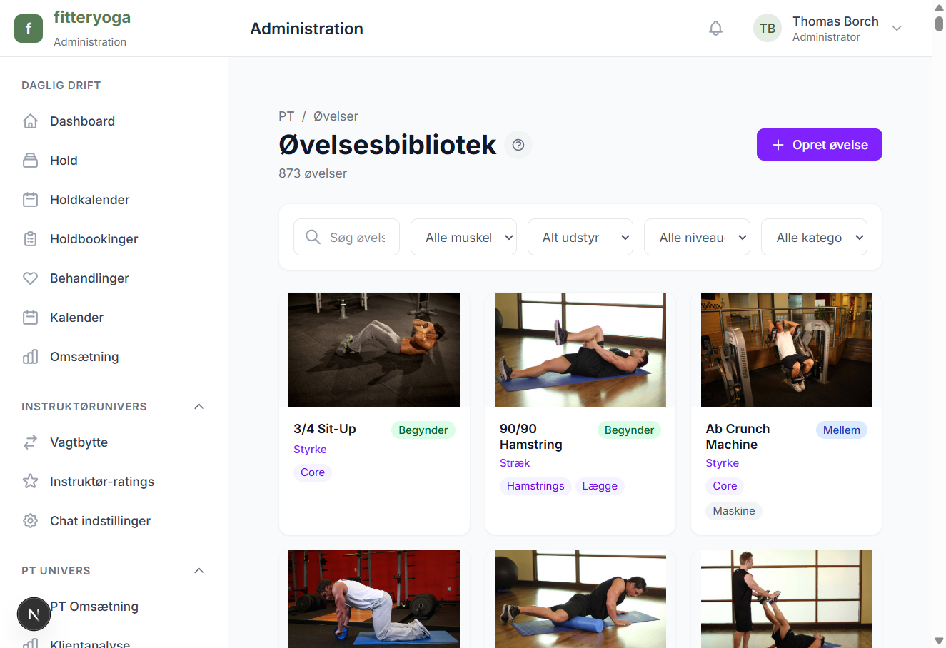 Kom i gang med det samme. Over 800 professionelle øvelser med animationer er klar til brug fra dag ét.
