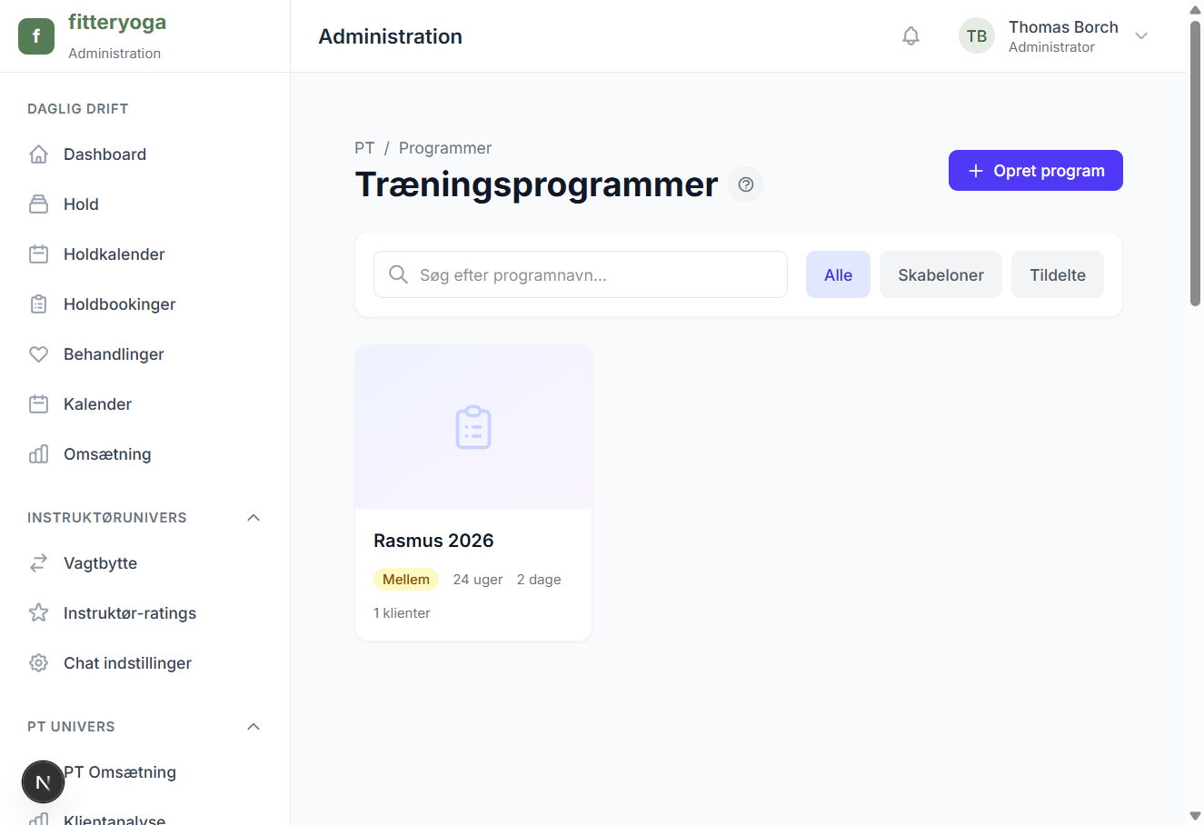 Perfekt til studier med flere trænere. Hver PT driver sin forretning — du har overblikket.